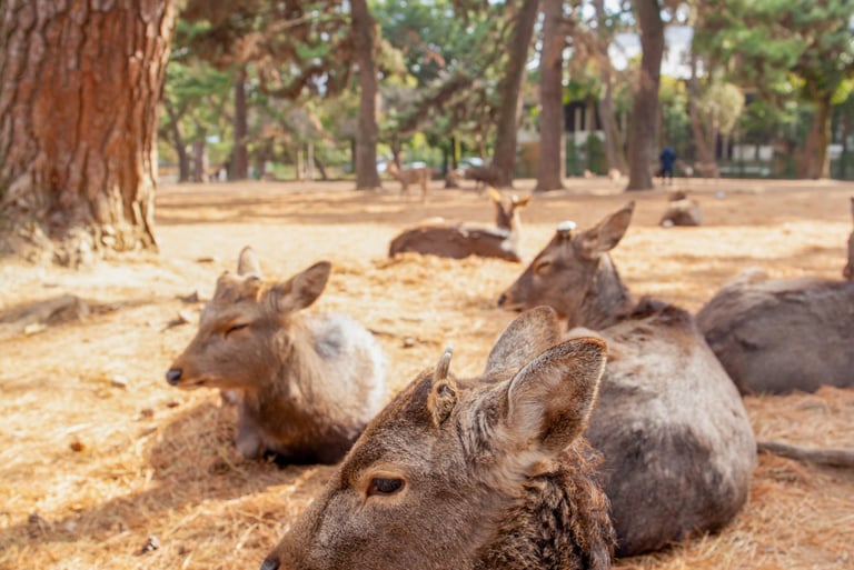 Located an hour from Osaka, Nara is home to 1200 wild deer who roam the streets, playfully eating treats and bowing like ancient royalty. Nara is also home to The Great Buddha (Daibutsu), located in Tōdai-ji Temple, the world's largest wooden building. Nara provides a one of a kind experience, a highlight to any trip to Japan.
